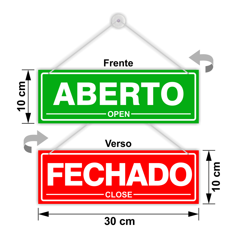 Placa Aberto Fechado Ventosa Cordão 30x10cm PS 2mm Aviso Portas Vitrines Loja Comércio Negócio Salão