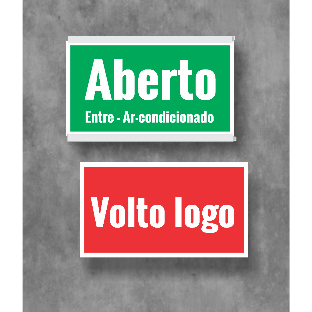 Placa Aberto Entre ar condicionado e volto logo 2 canaletas