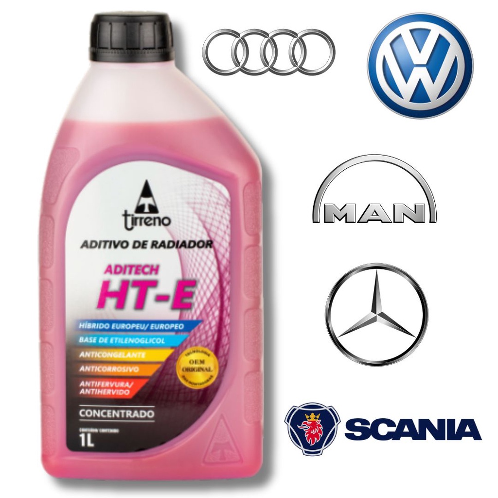 Aditivo Radiador Híbrido HT-E Lilás Rosa Concentrado Líquido Arrefrecimento Original Tirreno Homologado VW, Volkswagen, Audi, Mercedes, Bens, Scania e MAN