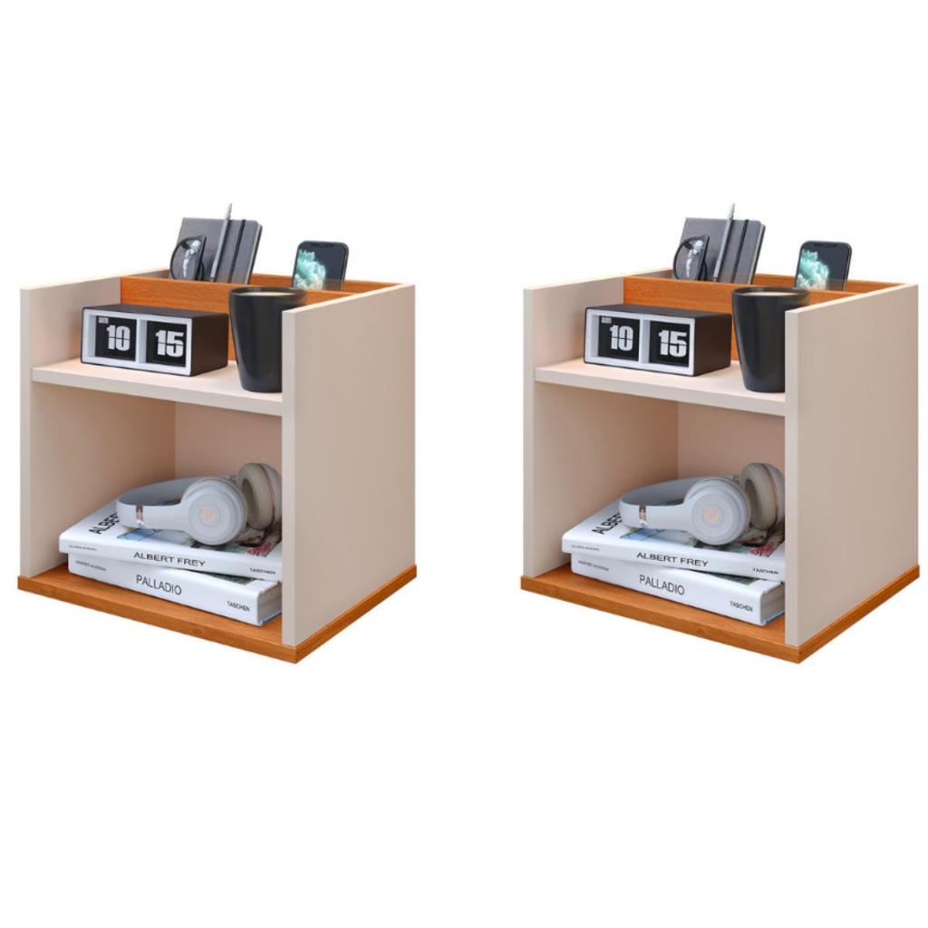 Kit 2 Mesa De Cabeceira 2 Gavetas Criado Para Quarto Decoração Com Prateleira Nicho Madero