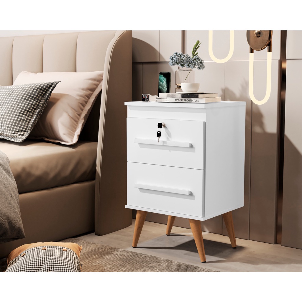Mesa de cabeceira 2 gaveta-criado mudo com chave branco e preto para sala quarto nicho pequeno moderno-industrial