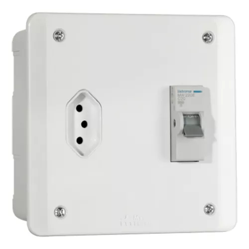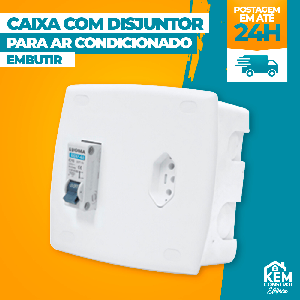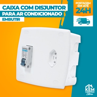 Caixa Disjuntor Bipolar 20A com Tomada 20A Interruptor Ar Condicionado Embutir Residencial Comercial