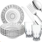 Kit Aparelho De Jantar 30 Peças Pratos Copos E Talheres Inox