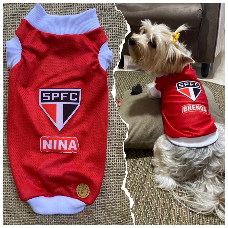 Camisa Pet Time São Paulo, Roupa de Cachorro Futebol Personalizada com nome do seu pet