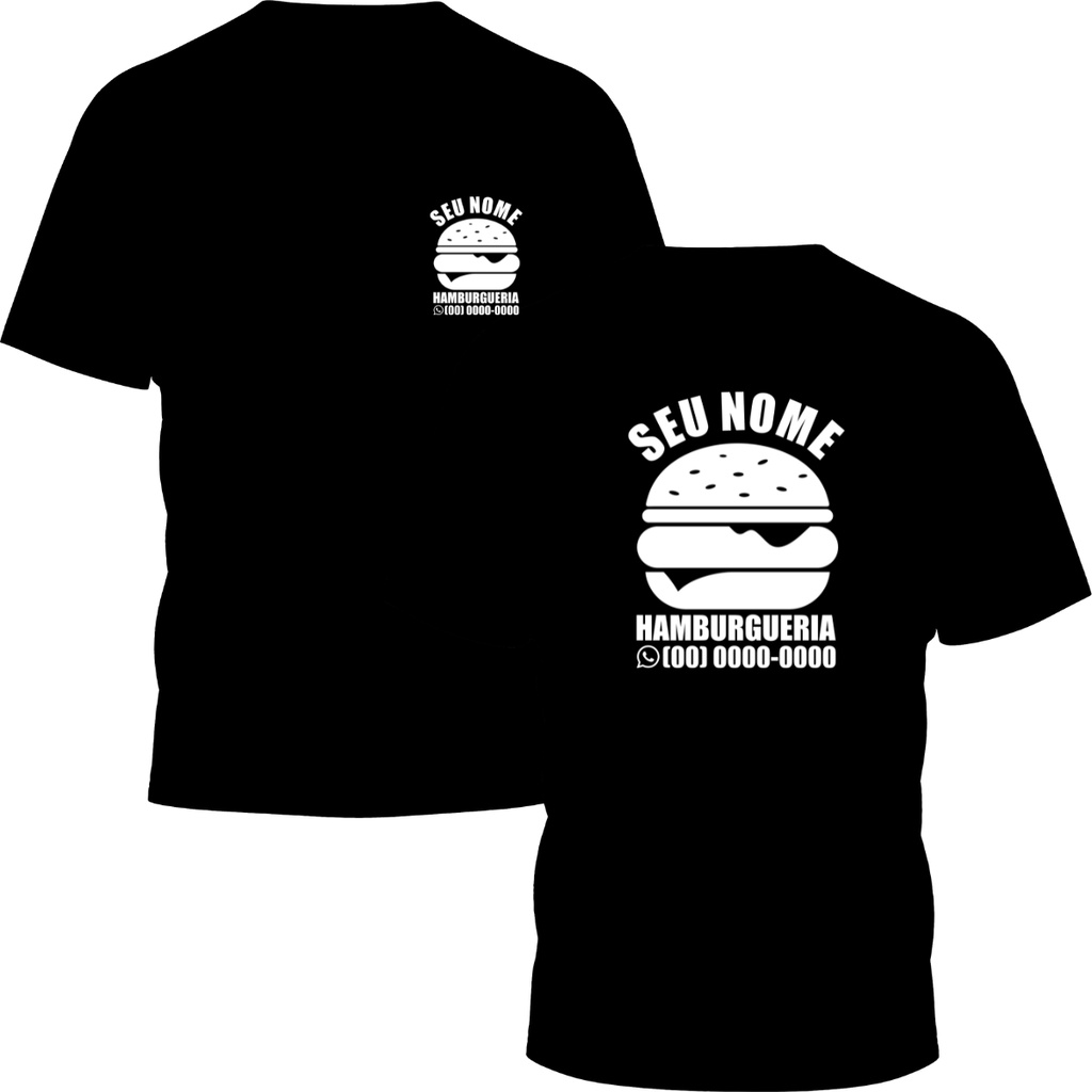 Camisa Camiseta Masculina Personalizada Hamburgueria Uniforme Trabalho Seu Nome Seu Numero Manga Curta Gola Redonda