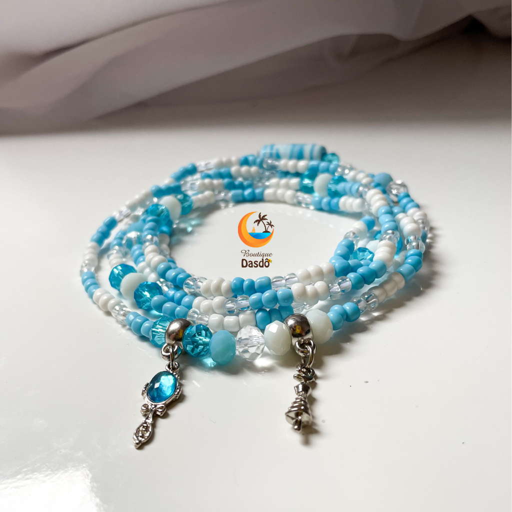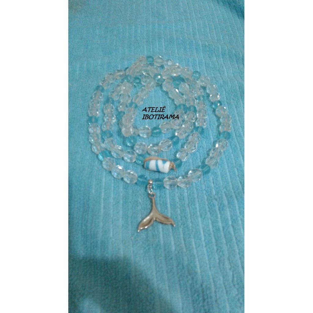 Guia Orixá Iemanjá Umbanda e Candomblé - cristais acrílicos 12 mm transparente com azul