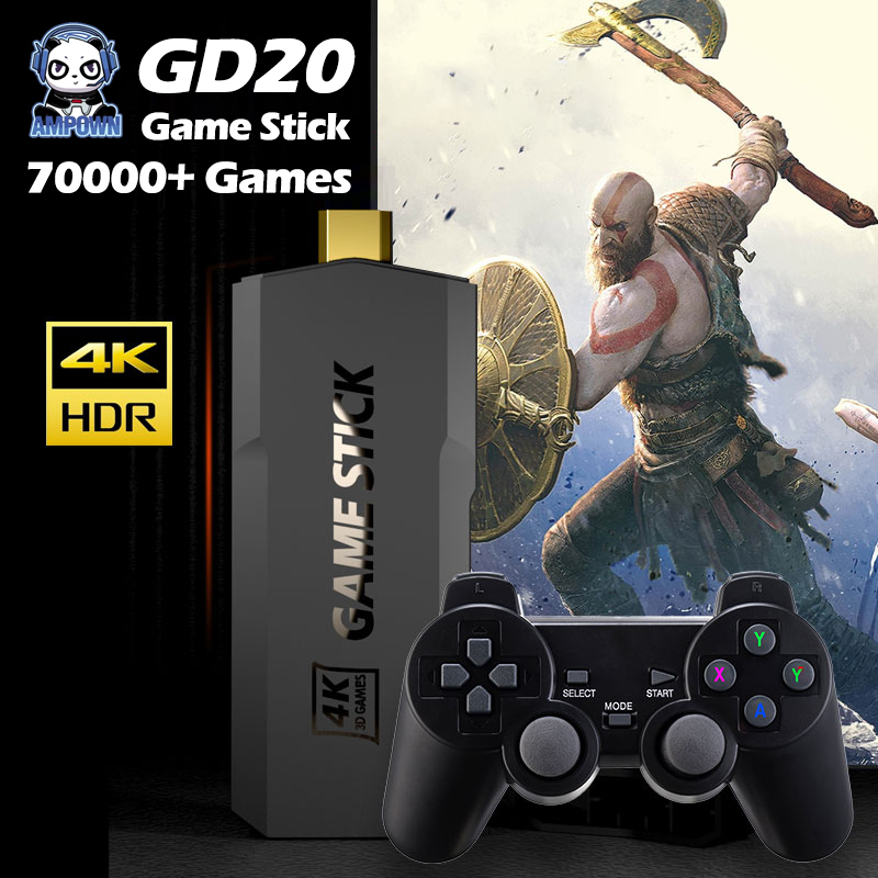 Novo Console De Vídeo Game GD20 TV 4K Stick De Jogo 2.4G Wirelss Retro Controlador HDMI Gamepad Com 256G 70000 Jogos FC PS1 PSP