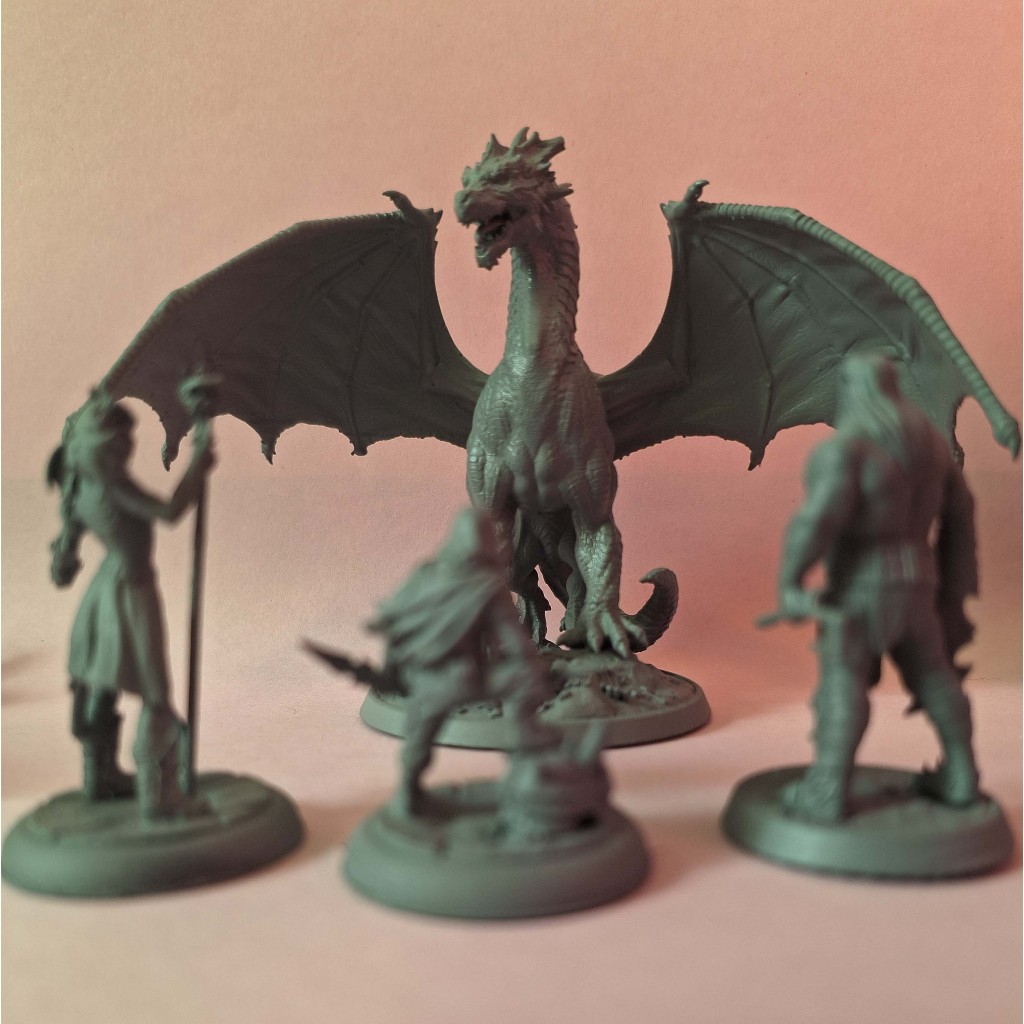 Kit 4 Miniaturas (Halfling Ladino, Orc Bárbaro, Tiefling Bruxa, Dragão) RPG D&D