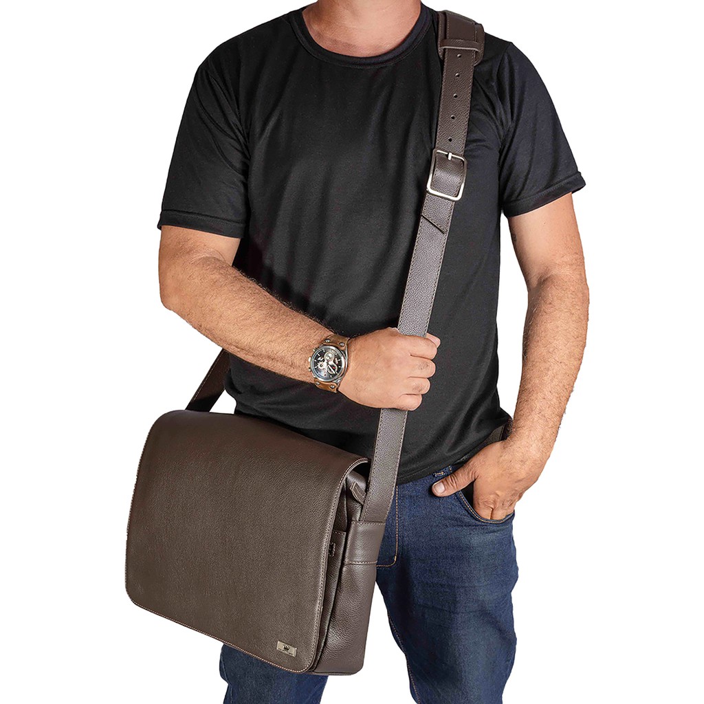 Bolsa Masculina Carteiro Transversal Couro Legitimo Notebook 15.9 Luxo