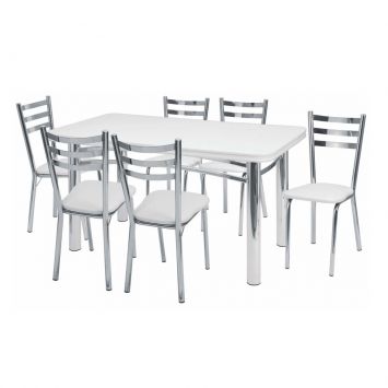 Conjunto de Mesa com 6 Cadeiras Adriana Prata e Branco