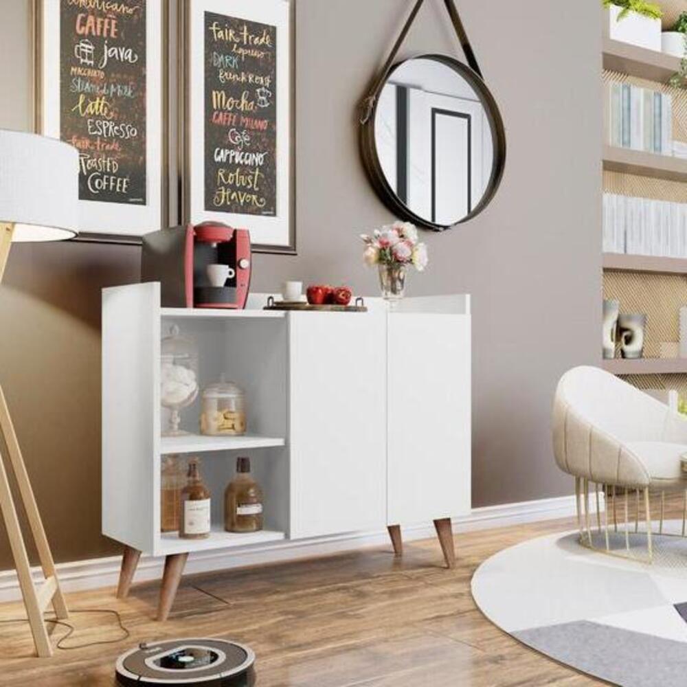 buffet aparador 2 portas e prateleira com pés de madeiras organizador