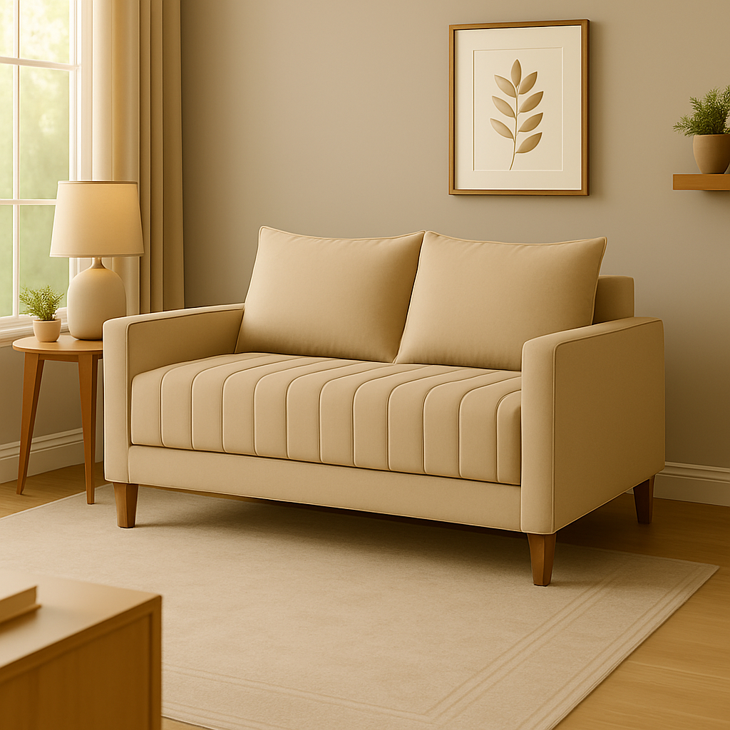 Sofá 02 Lugares Para Sala De Estar Pés Em Madeira 162 cm Stefan M03 Linho Bege - Lyam Decor