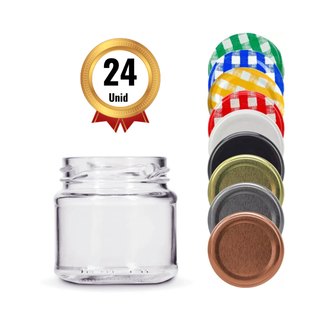 24 Potes De Vidro Mini Belém 150ml Com Tampa Metalica