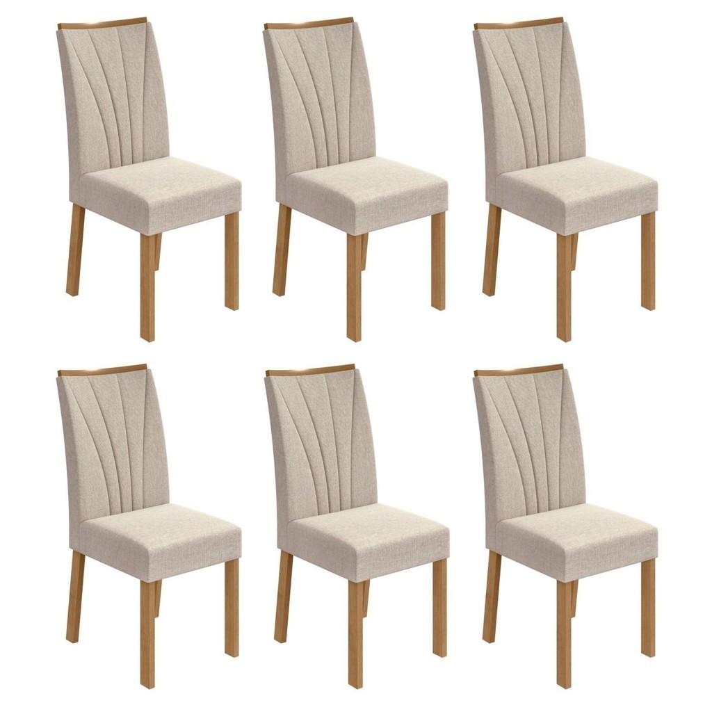 Conjunto 6 Cadeiras Estofadas Apogeu Móveis Lopas Amêndoa Clean/Linho Rinzai Bege