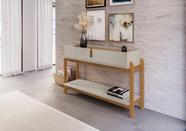 Aparador Hall de Entrada Bancada Sala de Estar Buffet Balcão Jantar Armário Cozinha Cantinho do Café 2 Gavetas Lizz Offwhite/Cedro