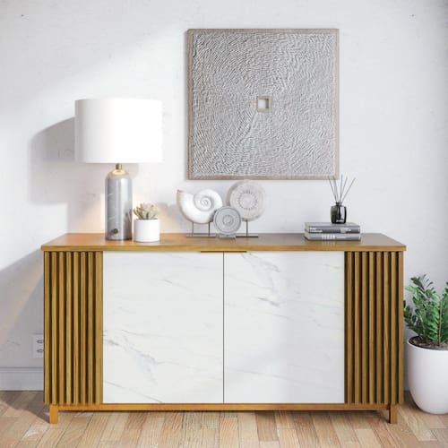 Buffet Aparador 4 Portas 160cm Ibiza Yescasa Noce Milano/Calacatta - Branco