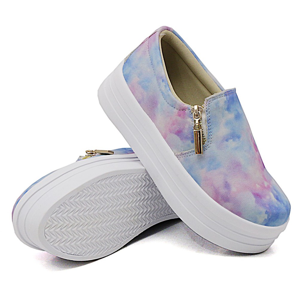 Slip On Tenis Casual Feminino DKshoes Ziper lateral Tye Dye
