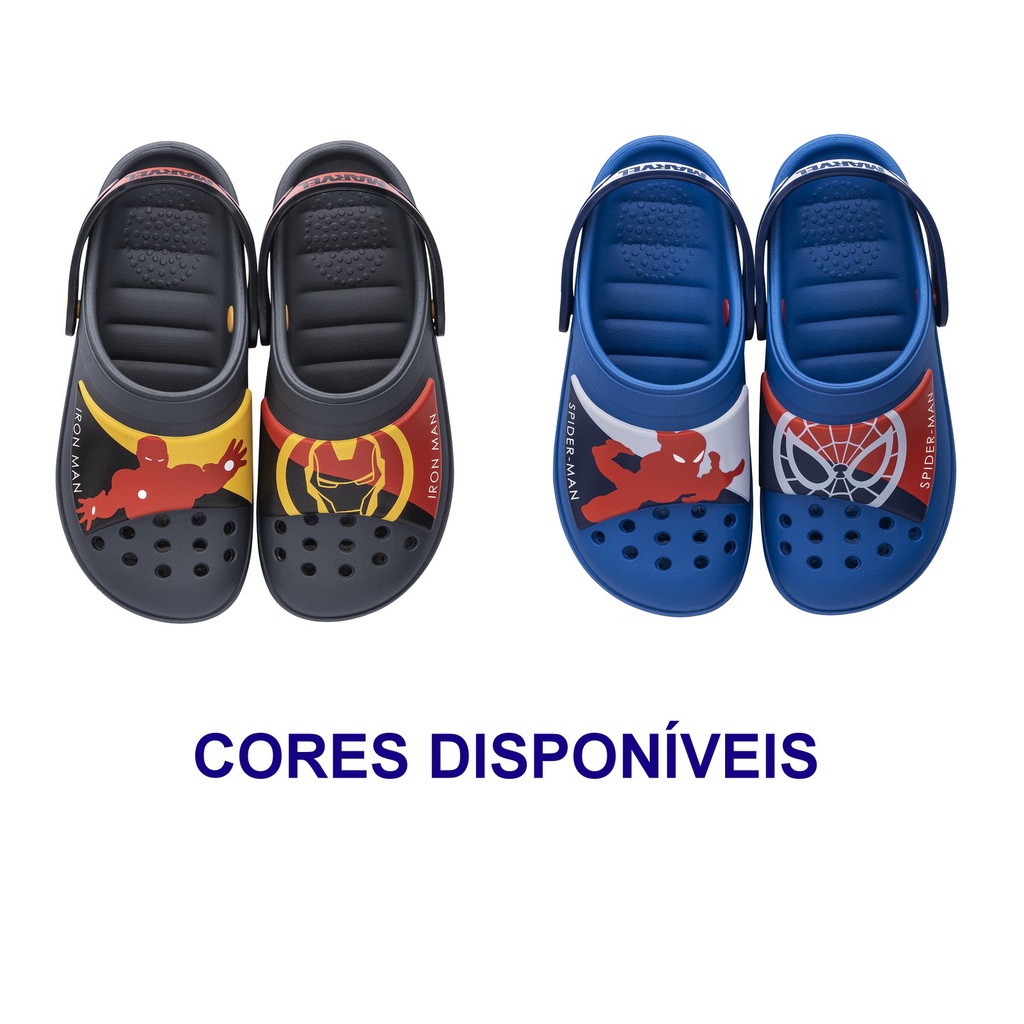 Babuche Sandália Infantil Marvel Action Homem de Ferro Homem Aranha Spiderman Vingadores Menino