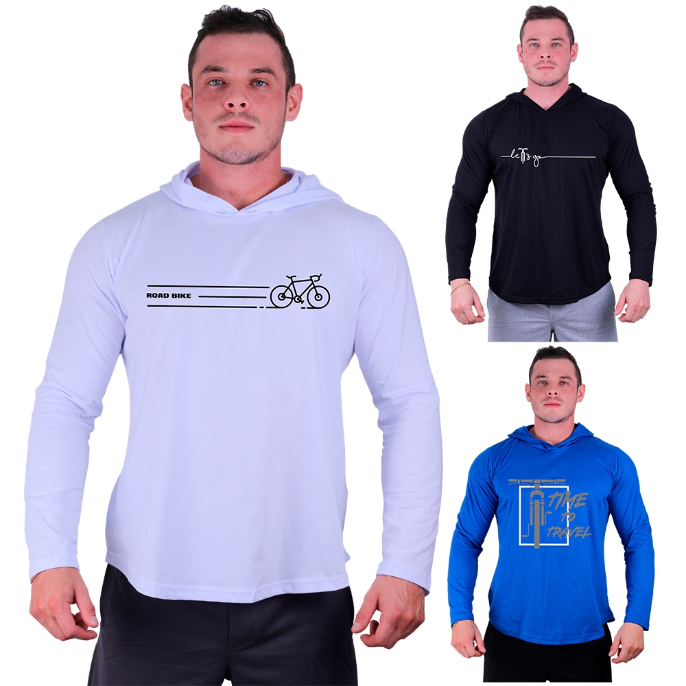 Kit 3 Camiseta Manga Longa Longline Com Touca MXD Conceito MTB