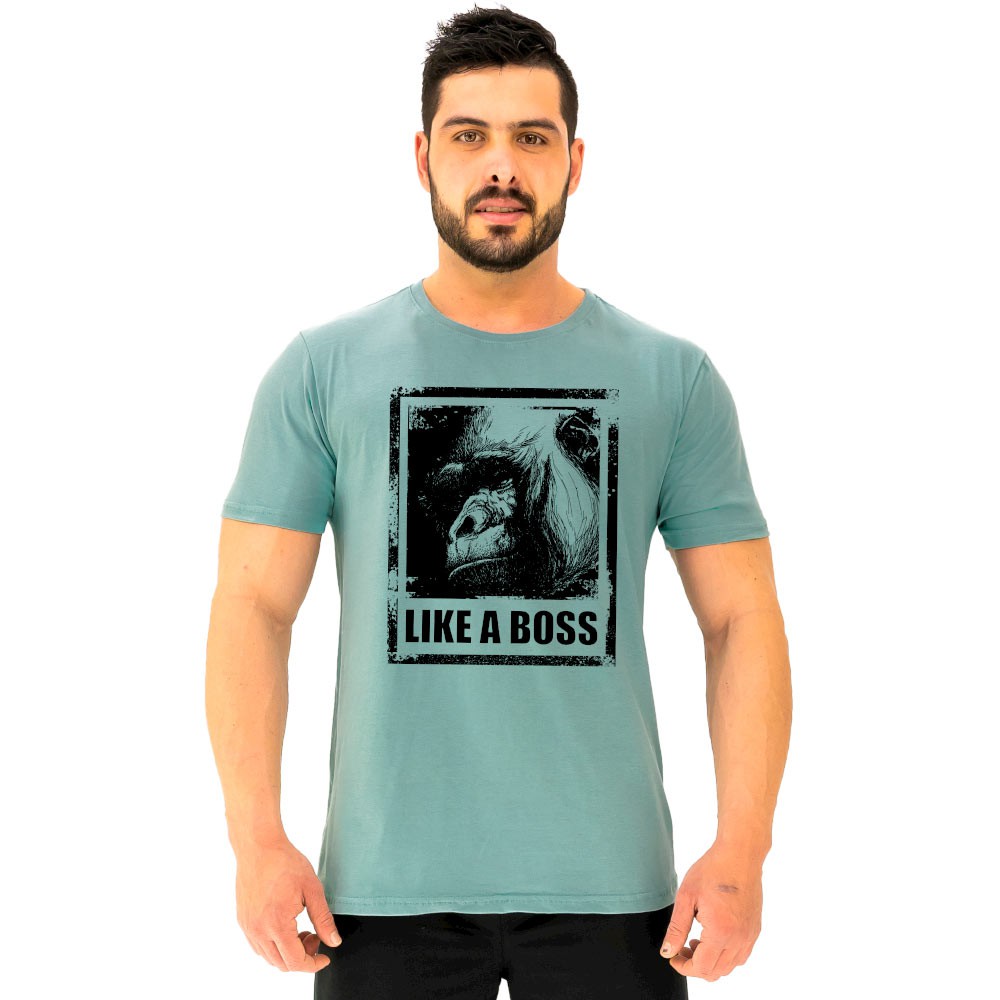 Camiseta Tradicional Masculina MXD Conceito Malha 30.1 Penteada Gorila Like a Boss Academia Musculação Halteres