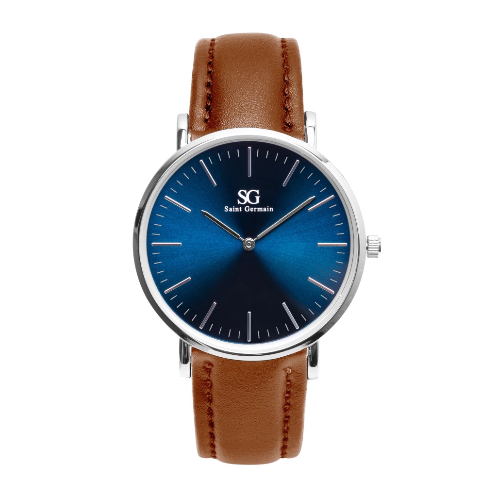 Relógio Masculino Couro Marrom Saint Germain Bronx Blue Silver 40mm