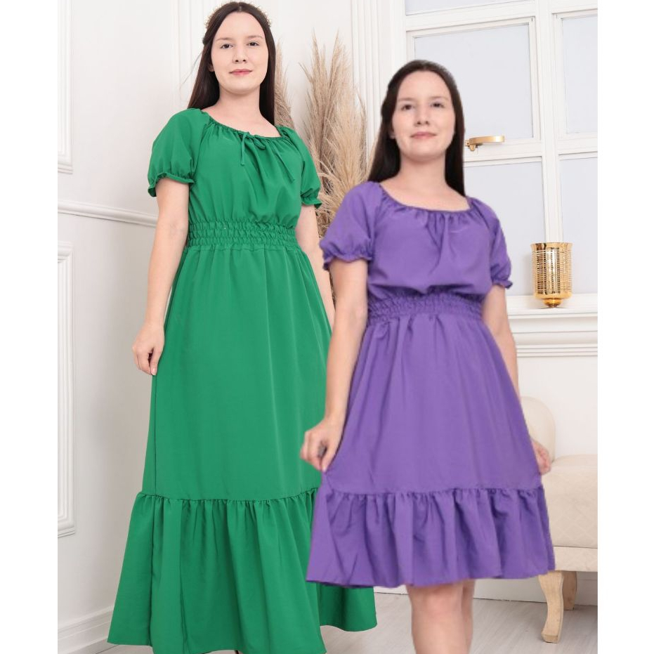 Vestido Elastex Curto ou Longo Feminino Ciganinha Florido Gode Rodado Evangélico