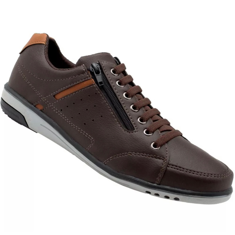 Sapatenis Tênis Masculino Casual Urbano Moderno De Couro Confort Com Zíper Ajustável Barato