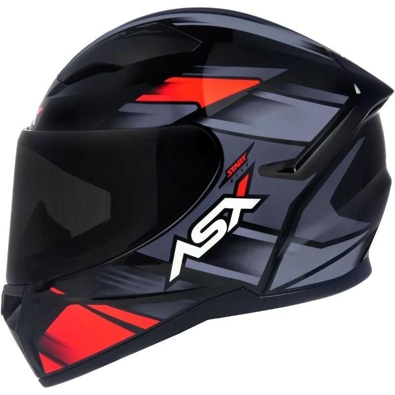 Capacete ASX City Start Preto Vermelho e Cinza Mais Viseira Fumê