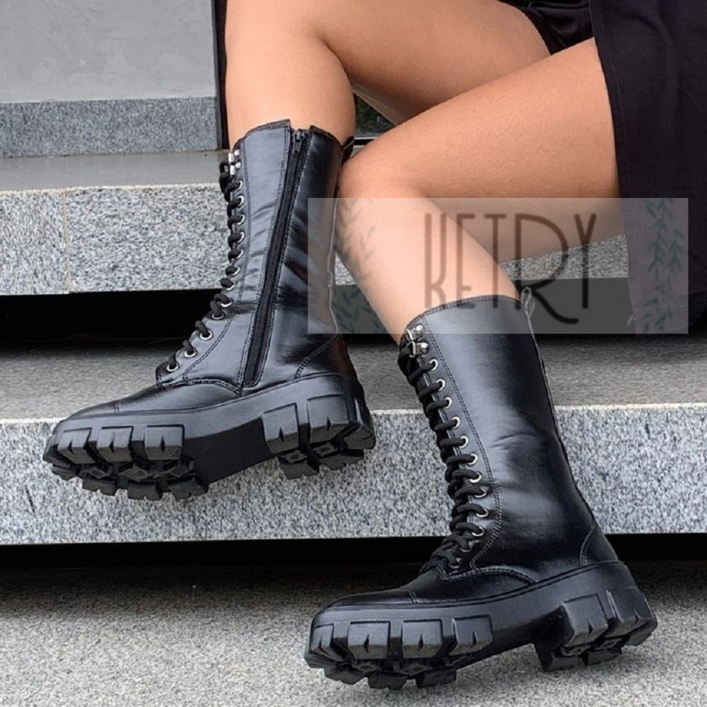 Bota Coturno Cano Longo Alto c/ Bags Removíveis de Blogueiras