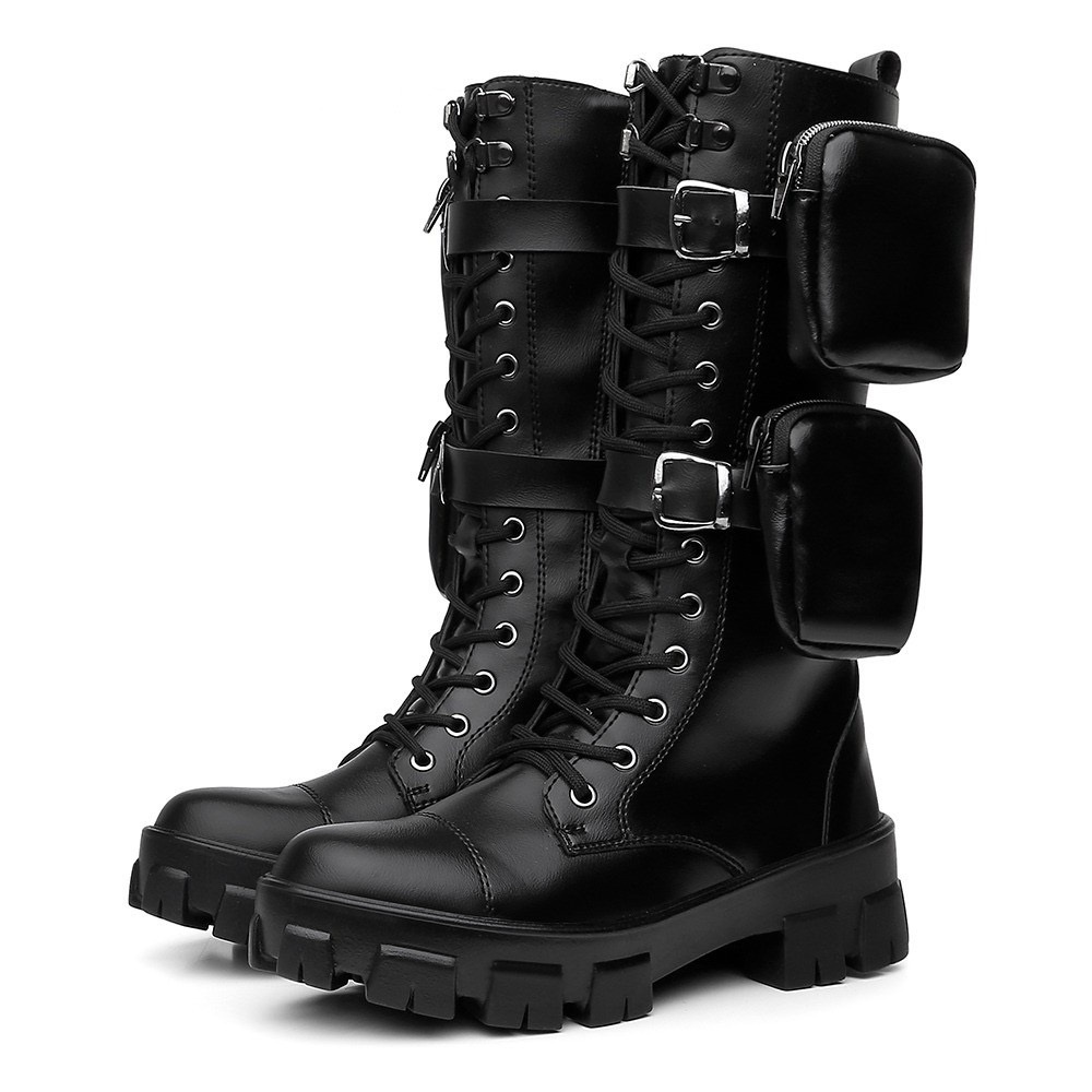 Bota Feminina Coturno Cano Alto Com BAGS Bolsinhas Removiveis Longo