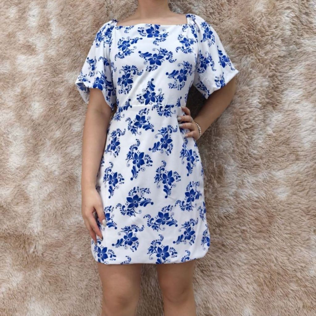 Vestido Evangélica Feminino Curto Manga De Morcego Estampado Flor Moda Praia Viagem