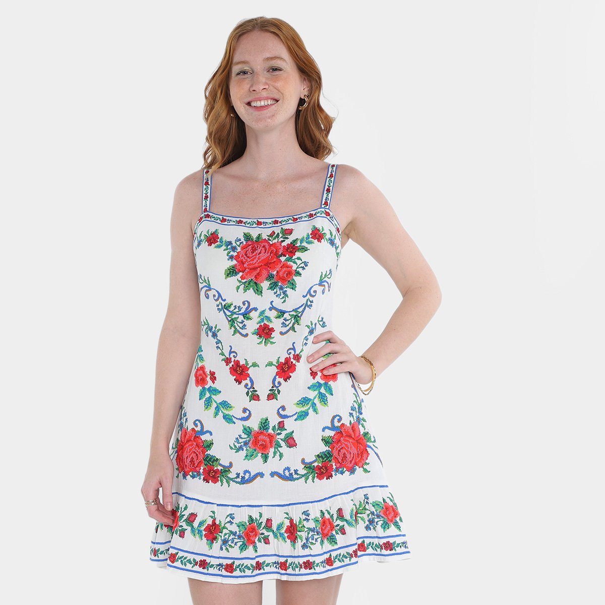 Vestido Curto Farm Flor Em Mosaico Feminino
