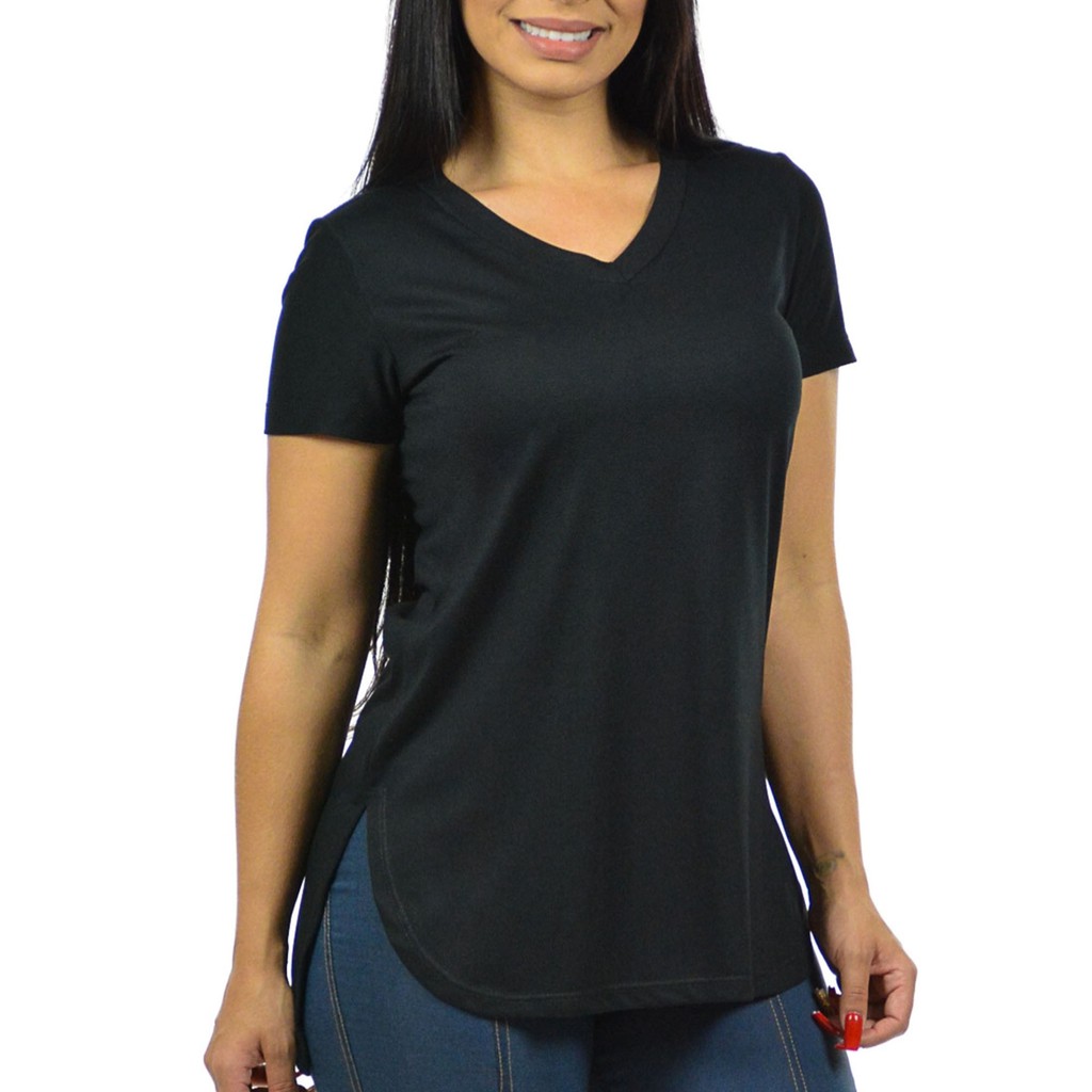 Kit 3 Blusa Feminina Longa Camiseta V Tapa Bumbum Plus Size Vest Legging Moderna