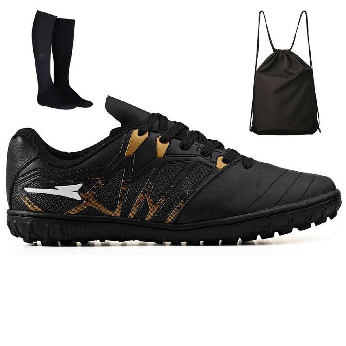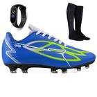 Kit Chuteira Sintetica Futebol Campo Grama Natural + Meião + Relogio Adulto