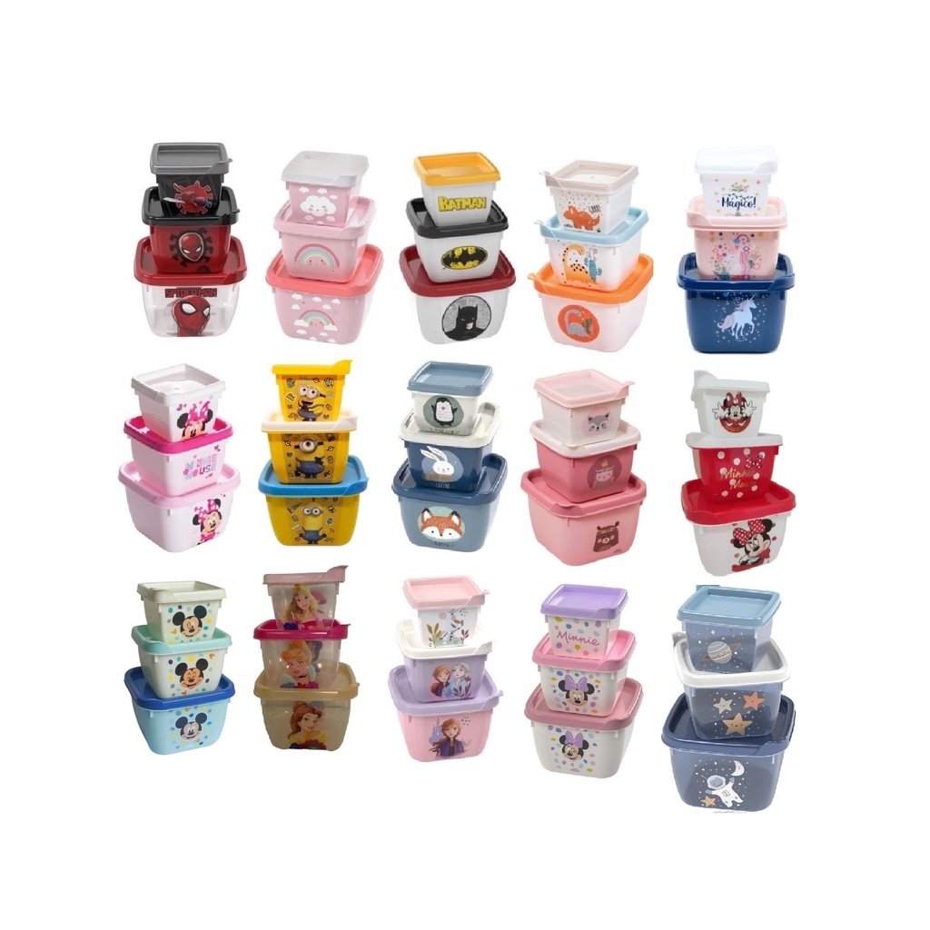Kit com 3 Potes Conect 140 / 270 / 470 ml Armazenar Lanche Infantil Papinha Bebê Potinhos com Tampa Plasutil Lancheira Creche Minions Minnie Bichinhos Homem Aranha Unicórnio