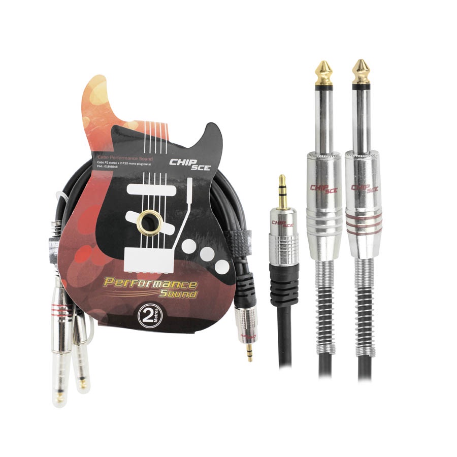 Cabo P2 Estéreo Para 2 P10 Mono 2 Metros - Alta qualidade