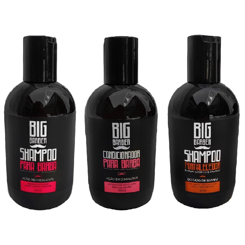 Shampoo Condicionador Fortalecedor para Barba Big Barber 250 ml Profissional Cuidado Limpeza Cabelo Bigode Hidrata