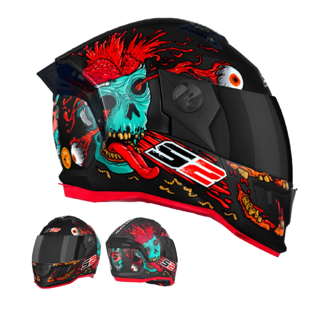 Capacete de Moto Urbano Fechado Feminino e Masculino Pro Tork Stealth Zombie Fosco Viseira Fumê