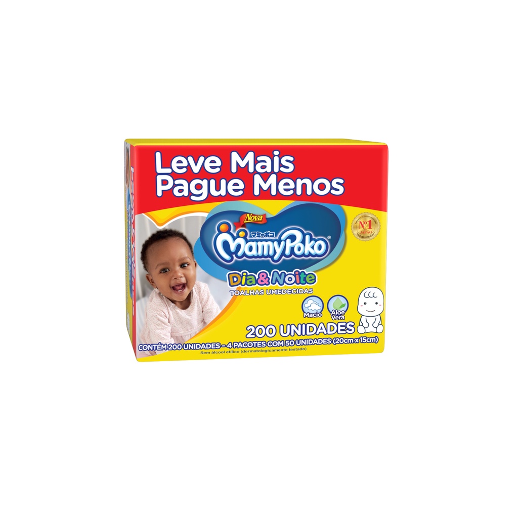Lenço Umedecido MamyPoko Dia & Noite 200 Unidades Pack com 4 Unidades Leve Mais Pague Menos