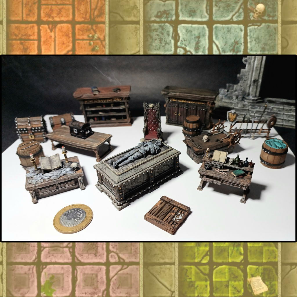 Miniaturas de Cenário - Móveis para Hero Quest, For The Quest, RPG, D&D e Zombicide