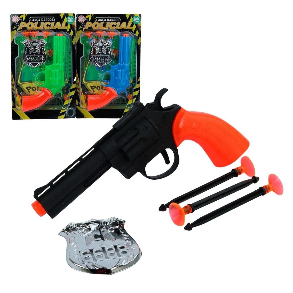Pistola Lança Dardo 16cm 05 Peças Policial Color Arma de Brinquedo Infantil
