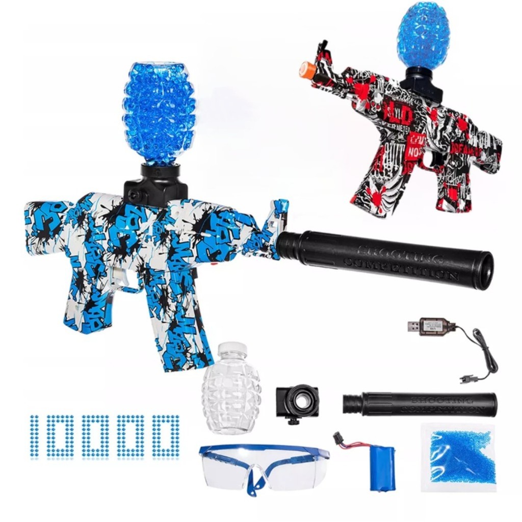 Kit Brinquedo Automático Lança Bolinha de Gel Elétrica Recarregável Grande e Pequena C/Óculos, Presente Infantil 2024