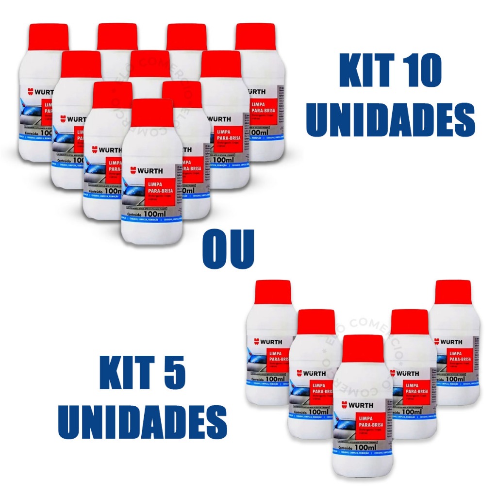 Kit 5 ou 10 Limpa Para Brisa Wurth 100ml Fluido Liquido Limpeza Limpador Detergente Parabrisa Automotivo Carro