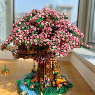 2138Pcs Pink Girl Sakura Tree House Compatível Com A Lego Pequeno Bloco De Construção De Partículas Decoração De Brinquedos