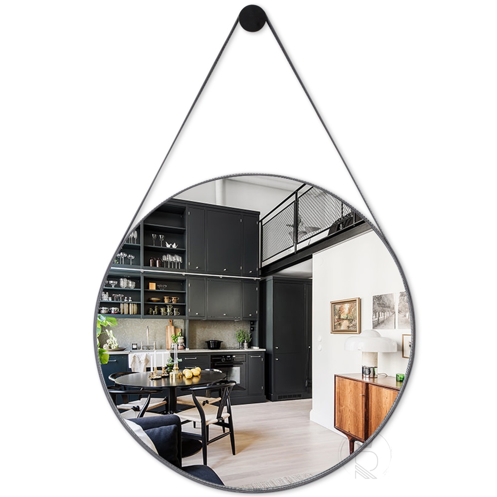 Espelho Moderno Redondo Lavabo Alça Em Couro Adnet 40 e 60cm + Suporte Pendurador