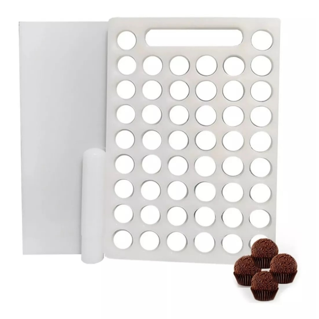 Placa Porcionadora para brigadeiros, beijinhos, bicho de pê e todos os tipos de doces para produção em massa 50 furos 10g - 28cmx19cmx1,5cm