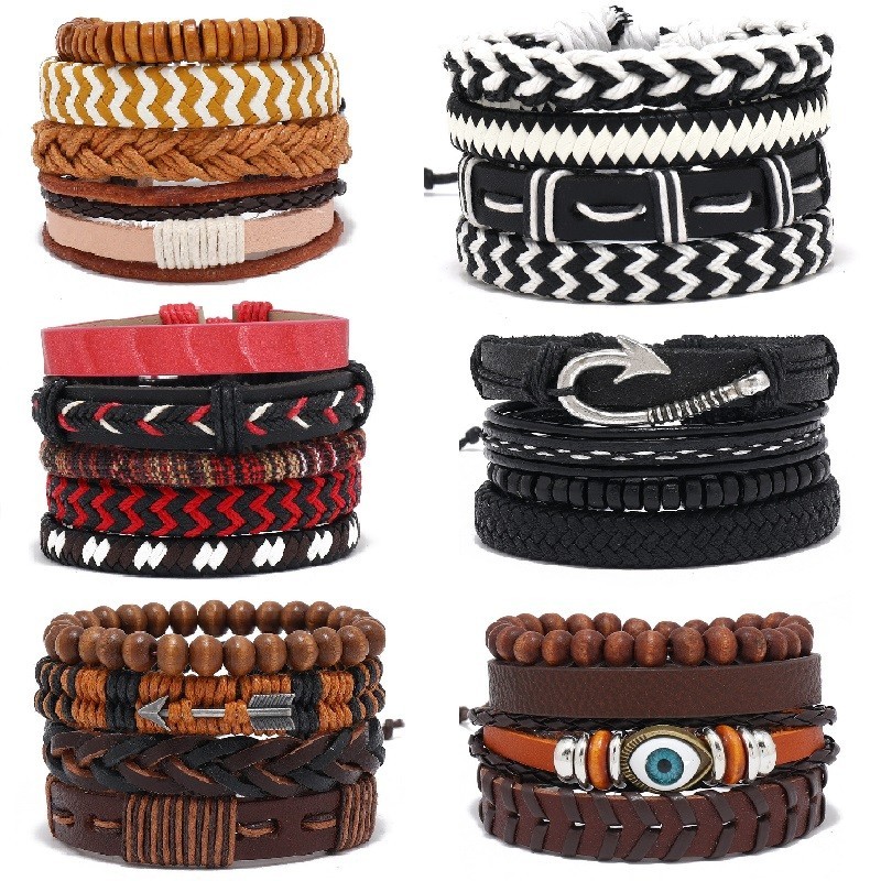 Pulseira De Couro Masculina Com Multi-Camadas Estilo Punk Gótico Vintage & amp ; Pulseiras Braço Joia Atacado