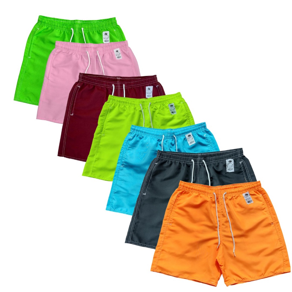 Bermuda De Elástico Short Mauricinho Praia Tactel Liso Neon