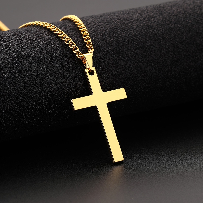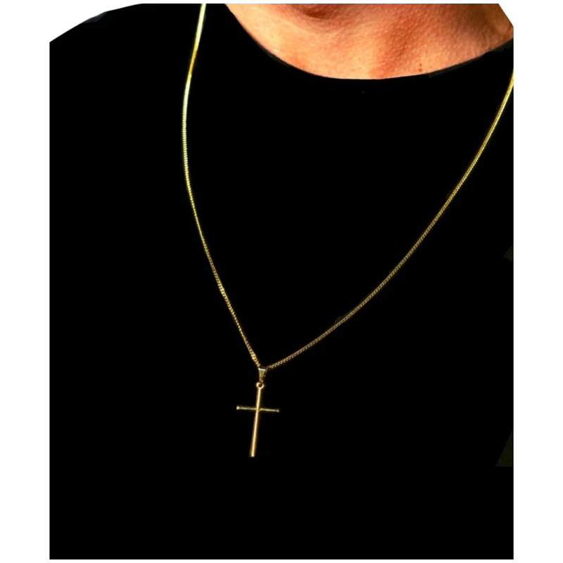 Kit Corrente + Pingente Cruz Palito Prateado e Dourado Banhados a ouro 18k Cordão 3x1 Masculina/Colar Feiminina Crucifixo Moeda Antiga Aço Inoxidavel 316L