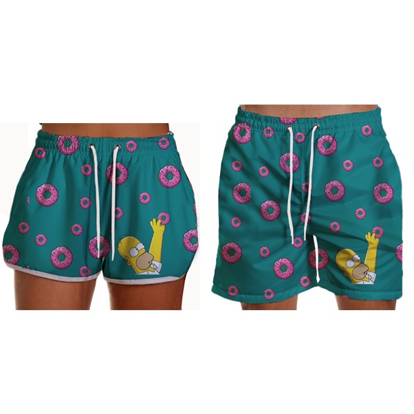 Kit Casal Mozão Short Donuts Simpson Tactel Praia Estampado Elastano Samba Canção Sh37